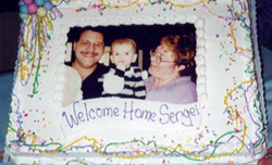 It's now the first part of December 1999 and everyone was getting all up tight about Y2K (the millennium scare). We received our last piece of paperwork needed for our Dossier. Ironically, it was the first piece of paperwork we had sent out. The agency asked us if we would be ready to go over to Russia over Christmas if we got a Court date and with out hesitation we said yes. Unfortunately, we didn't get to go before Christmas. The embassy in Moscow closes down over the holidays. So we waited and waited for the phone call we desperately wanted. January 2000 rolled around and they thought we would be on our way by the end of the month. When no telephone call came at the end of January we started to get worried and wondered if something went wrong. January went by, then it was the middle of February. At this point, we thought we would never be able to hold Sergei in our arms. We couldn't stop thinking that something was going to happen to make it so we wouldn't get him and I don't think Denise or I could have started all over again. Then, when we least expected it, on Thursday, February 25, 2000 at 10:10 PM we finally got the telephone call we had been waiting for. Jane had called and said were leaving in 6 days. She told us to pack your bags and get everything ready. The departure date for Russia was March 1, 2000 and on March 2nd we would finally be able to see our son.