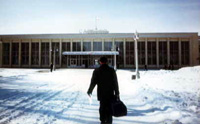 When we landed in Saratov we exited the plane and headed for a small gate. At the gate were about 50 people. They had to stand outside in the cold. When we walked through the gate, we heard our name being called. There was a tall skinny young man and a shorter balding man. We came to know these two gentlemen very well. The young man was our interrupter, Nick and the other gentleman was our Driver, Sasha. We went to a small building and claimed our bags then it was off to the car. Sasha was going to take us to our Host Families Apartment. Our Hostess was Lena. She spoke good English and Sasha the driver was her boyfriend. He spoke only a few words of English. They lived in an Apartment on the 6th floor of this old Apartment house. There are no elevators. The door leading into the building was falling off the hinges and looking down at the ground you could see used needles and syringes. The hallway was dark, almost all of the light bulbs are burnt out and it smelled like Cat Urine. There is cat food and raw fish out in dishes in the hallway feeding about 5 or 6 stray cats. Lena's apartment is small but very clean and nice. She showed us to a bedroom that had a baby crib set up in it, a double bed and a closet to hang our clothes in. She told us to make ourselves at home. For the next 7 days she cooked us 3 meals a day and made sure we were comfortable and had everything we needed.